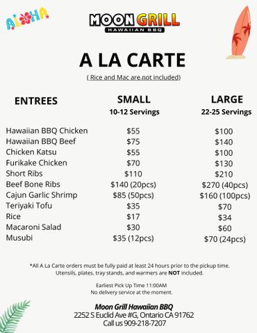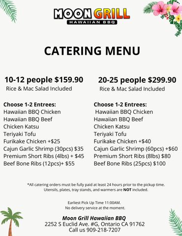 Moon Grill Hawaiian BBQ is a proud family-owned restaurant built on a love for bold flavors and quality food. We serve all your favorite Hawaiian BBQ classics and take things up a notch with upscale touches like lobster tail and Asian fusion flavors throughout our menu.
